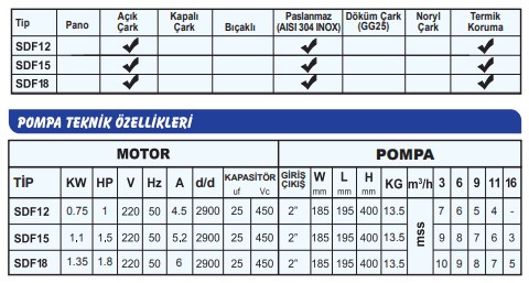 Sumak SDf15/2 Komple Paslanmaz Foseptik Dalgıç Pompası 1,5 Hp